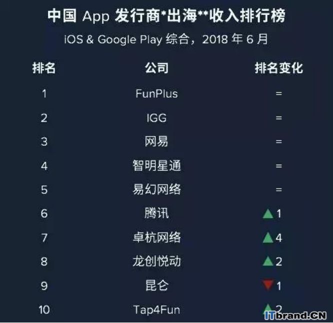 根据App Annie公布的“2018年6月中国App发行商出海收入榜单”显示,网易在这份名单当中位列第三,排在他前面的是IGG和FunPlus,排在第四的是智明星通。